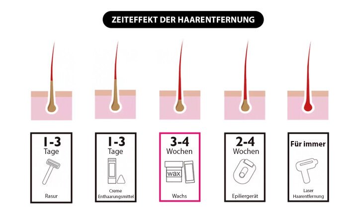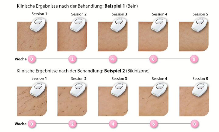 Wir bemerkten die ersten ausfallenden Haare nach der ersten Behandlung. Nach Woche 3 gab es kaum noch neuen Haarwuchs, während die Haut nach den 7 Behandlungen seidig glatt war und keine neuen Haare mehr wuchsen.